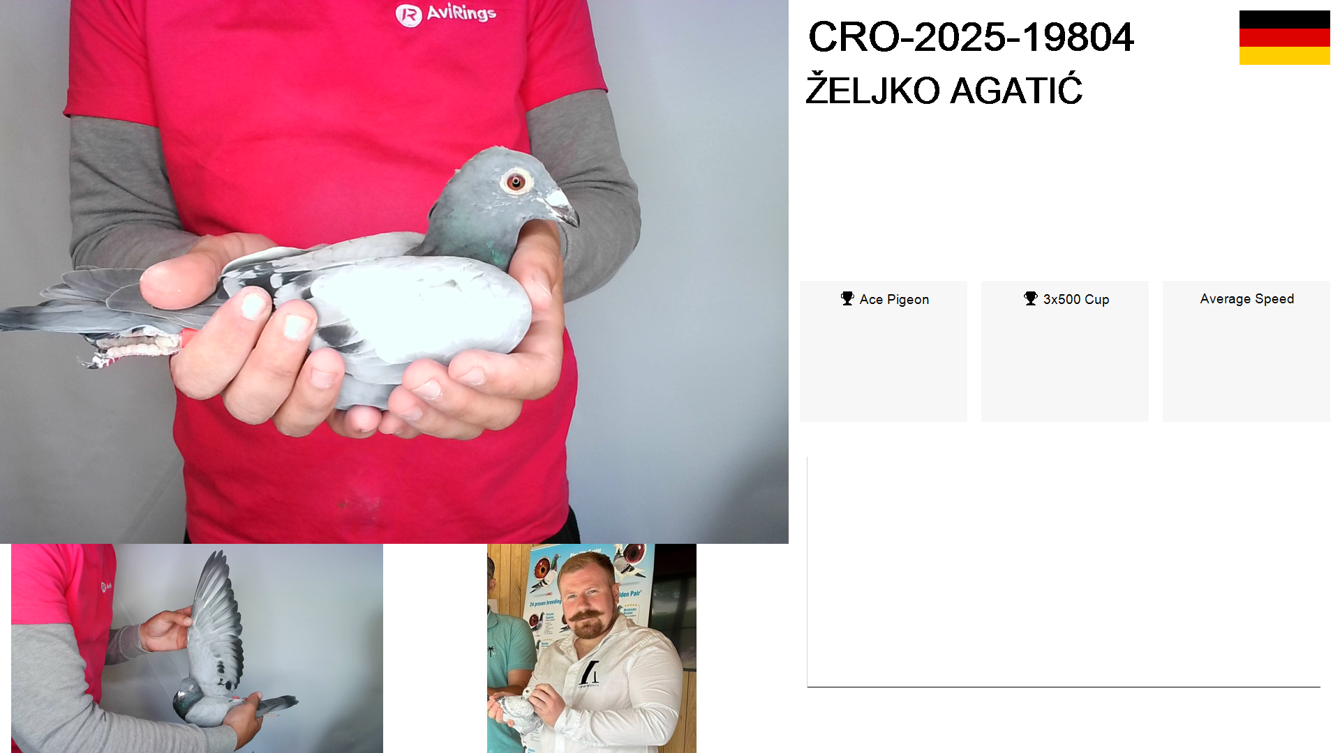 | Race | Position | Number of pigeons | Percent | Speed | Distance |