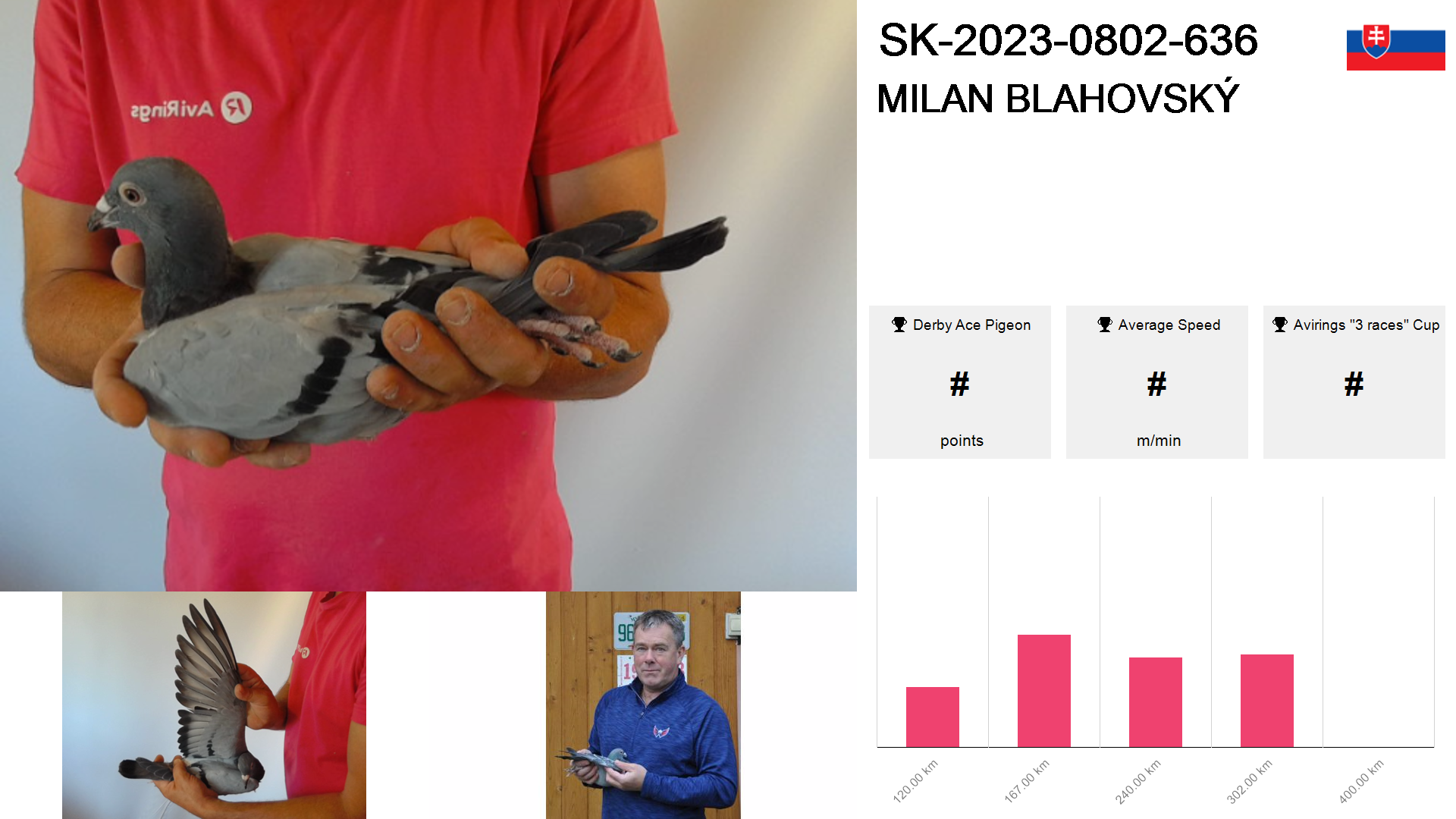 | Race | Position | Number of pigeons | Percent | Speed | Distance |