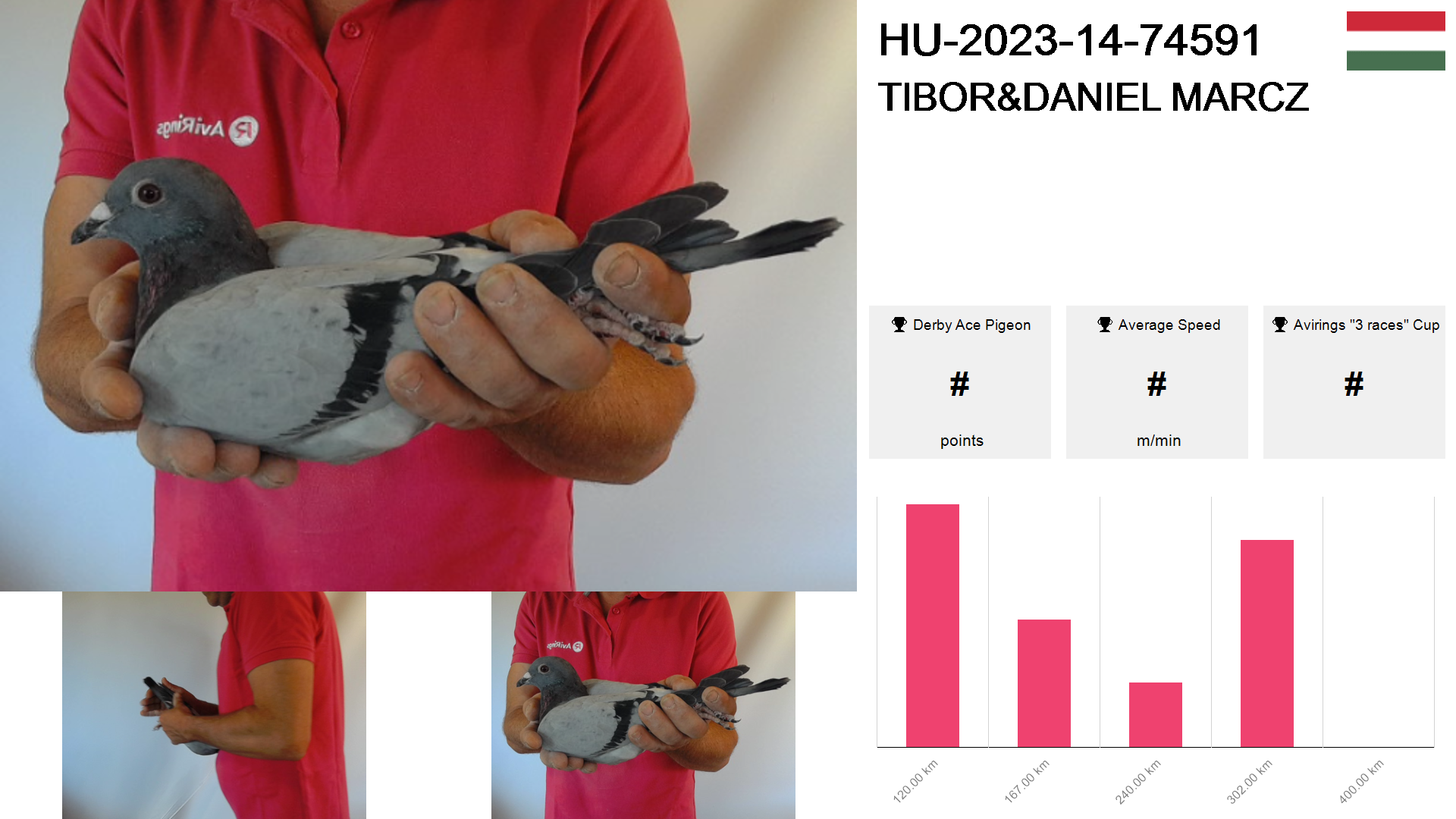 | Race | Position | Number of pigeons | Percent | Speed | Distance |