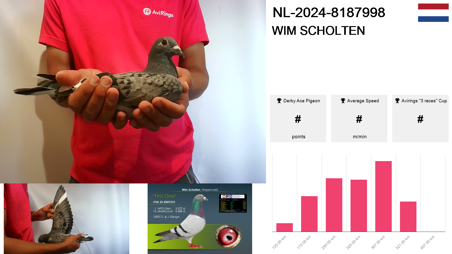 | Race | Position | Number of pigeons | Percent | Speed | Distance |