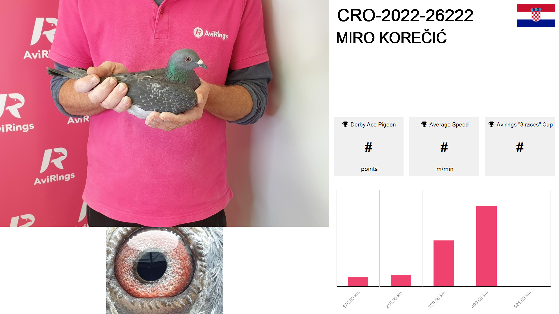 | Race | Position | Number of pigeons | Percent | Speed | Distance |