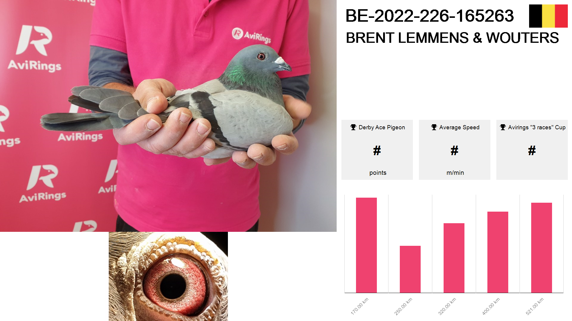 | Race | Position | Number of pigeons | Percent | Speed | Distance |