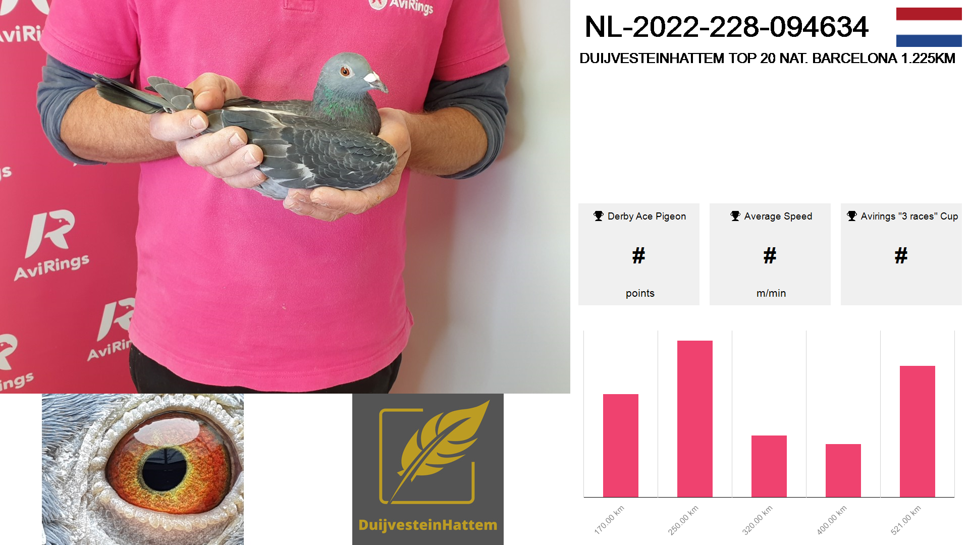 | Race | Position | Number of pigeons | Percent | Speed | Distance |