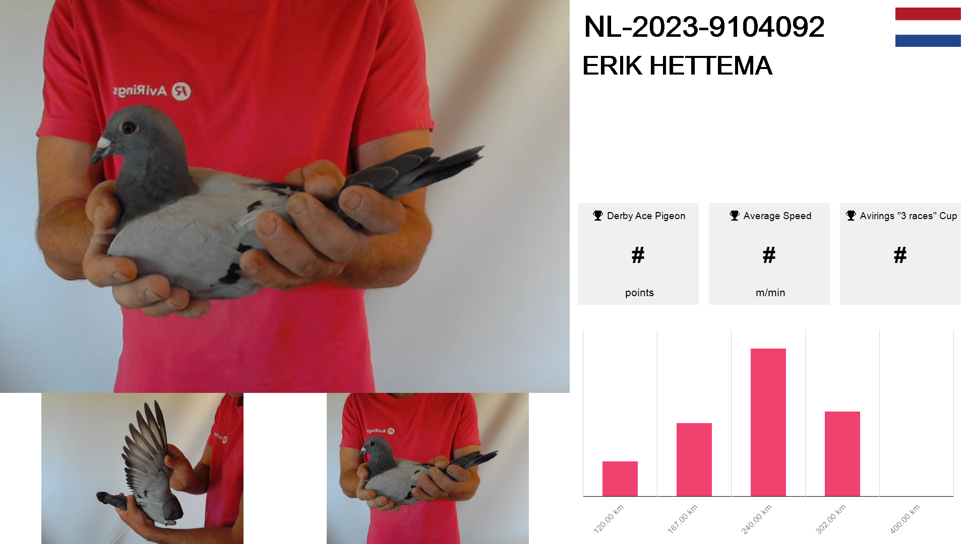 | Race | Position | Number of pigeons | Percent | Speed | Distance |