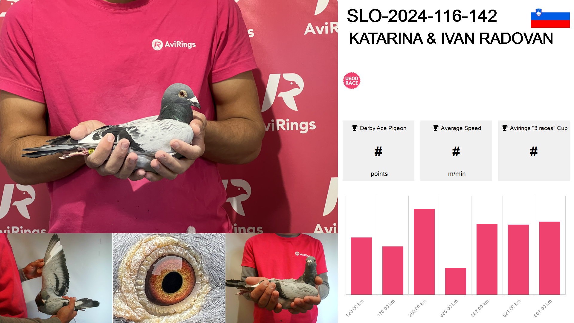 | Race | Position | Number of pigeons | Percent | Speed | Distance |