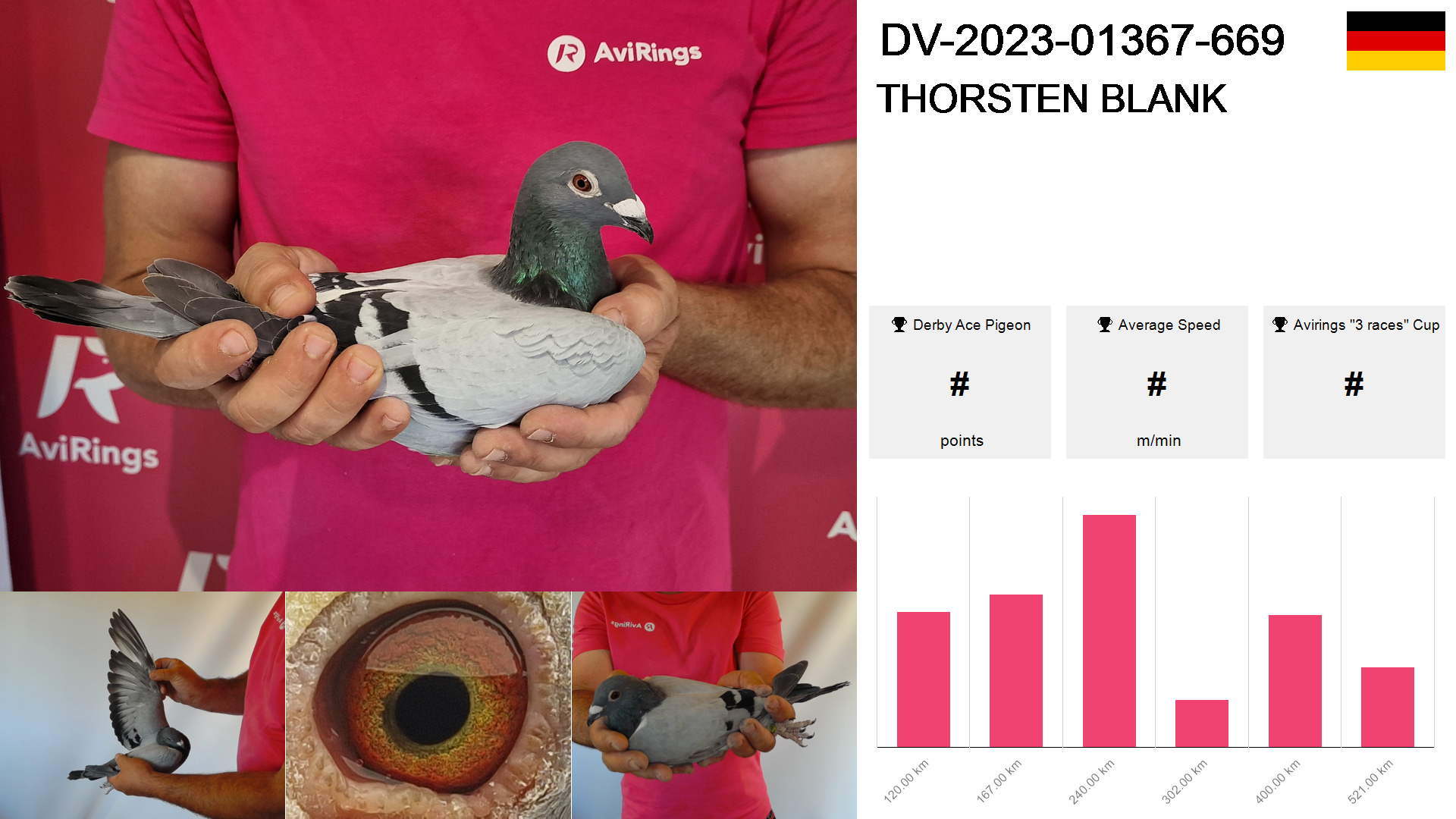 | Race | Position | Number of pigeons | Percent | Speed | Distance |