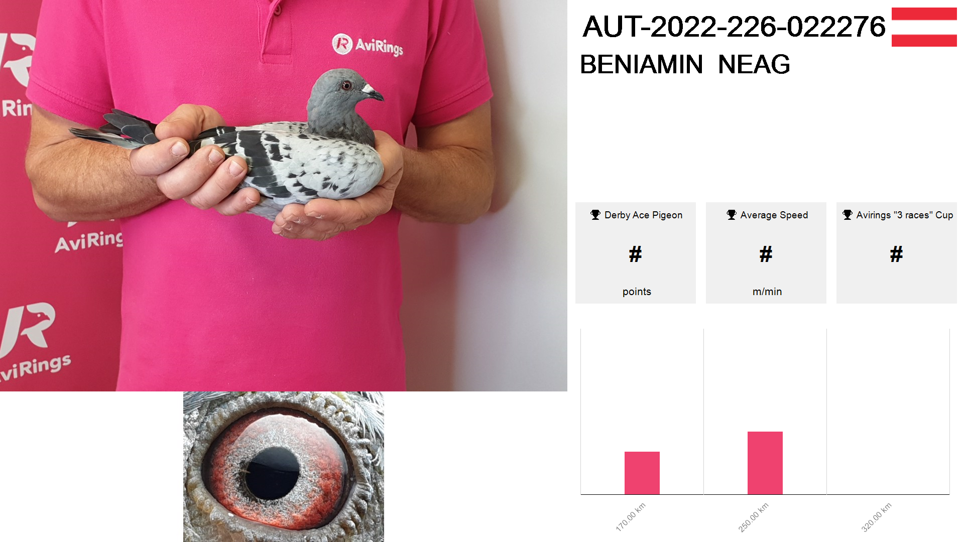 | Race | Position | Number of pigeons | Percent | Speed | Distance |