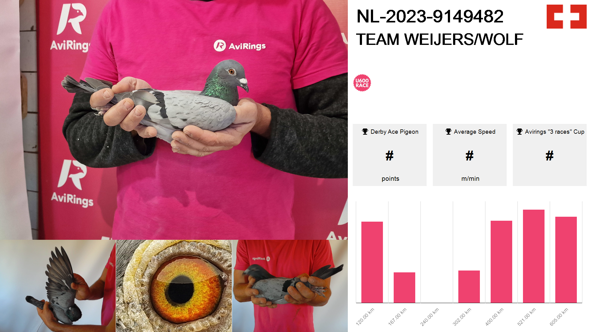 | Race | Position | Number of pigeons | Percent | Speed | Distance |