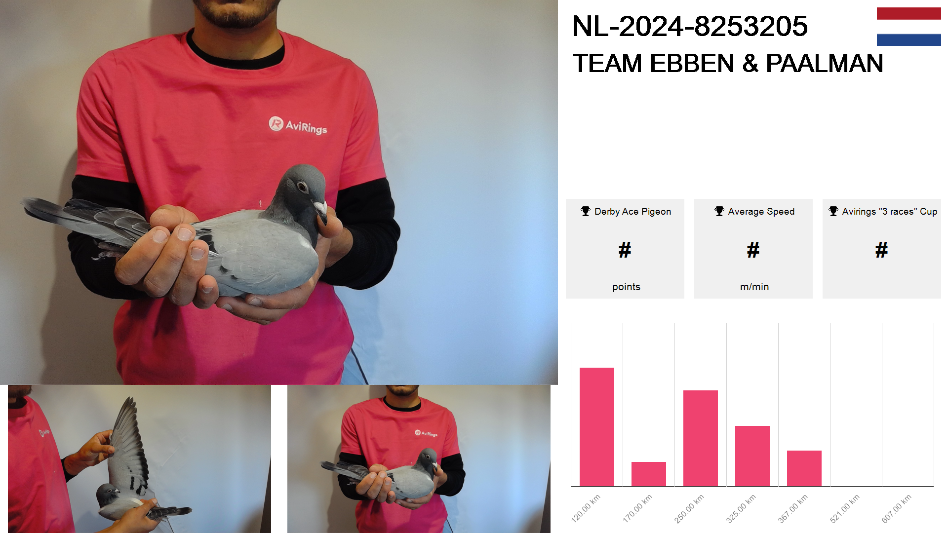 | Race | Position | Number of pigeons | Percent | Speed | Distance |