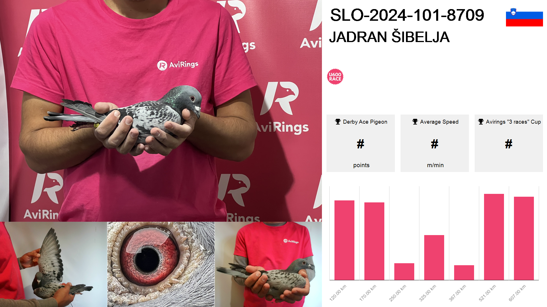 | Race | Position | Number of pigeons | Percent | Speed | Distance |