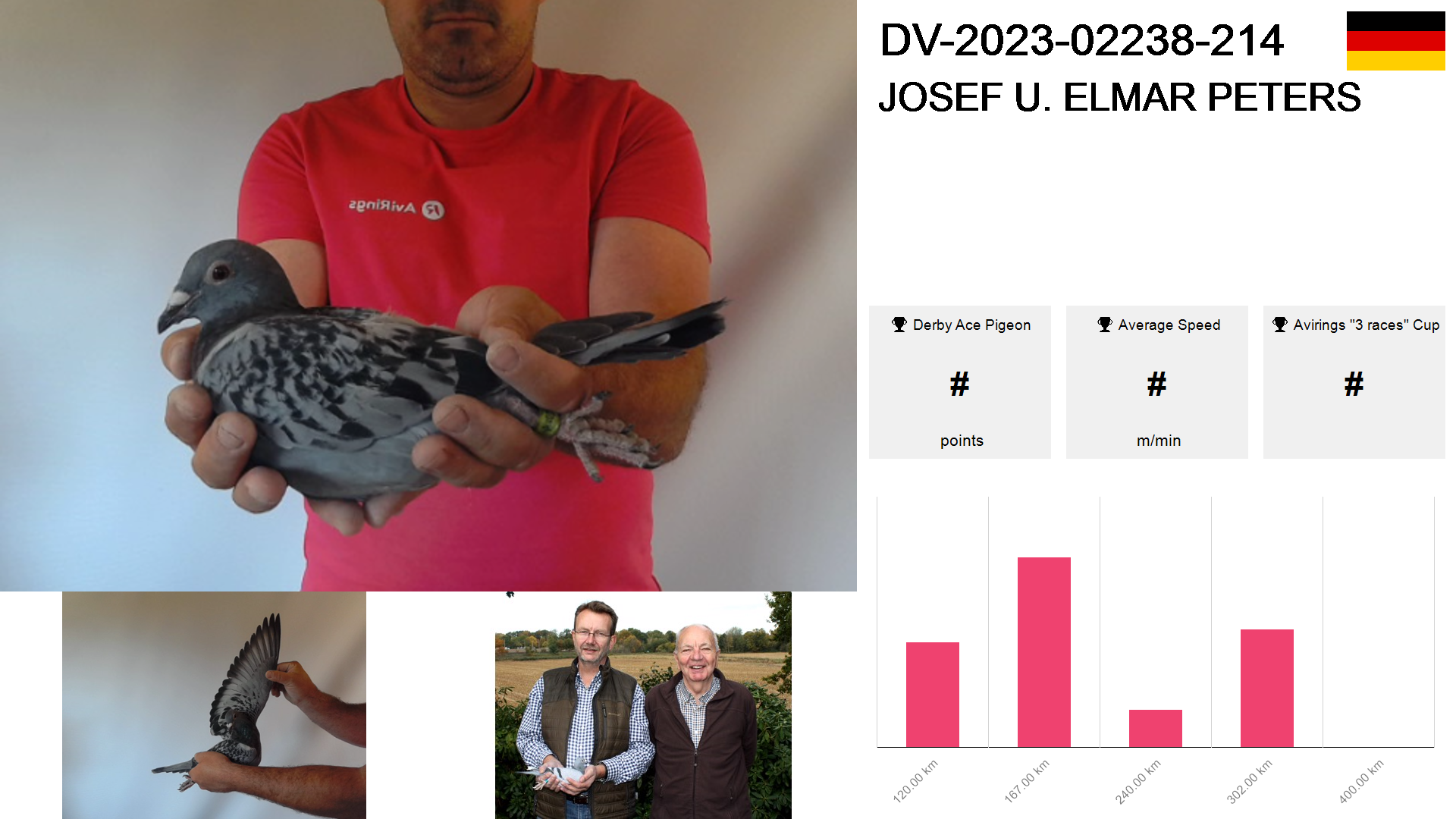 | Race | Position | Number of pigeons | Percent | Speed | Distance |
