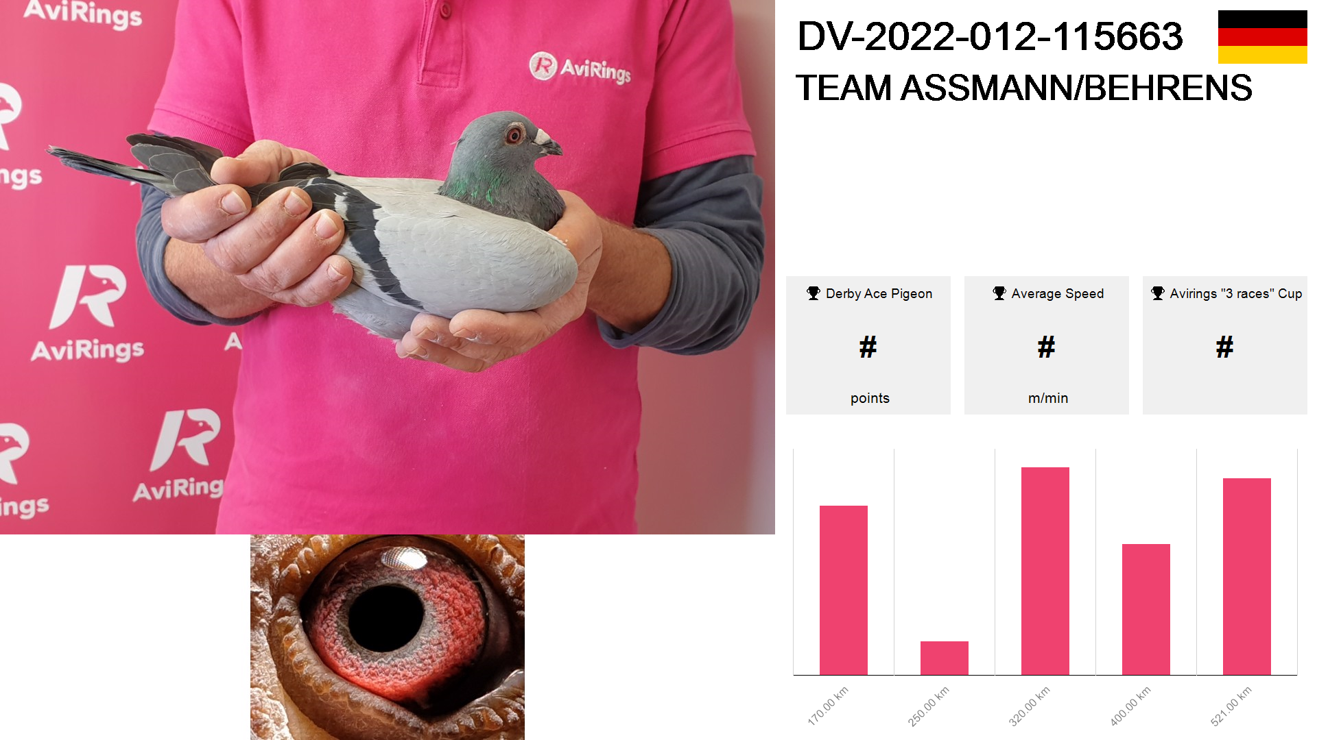 | Race | Position | Number of pigeons | Percent | Speed | Distance |