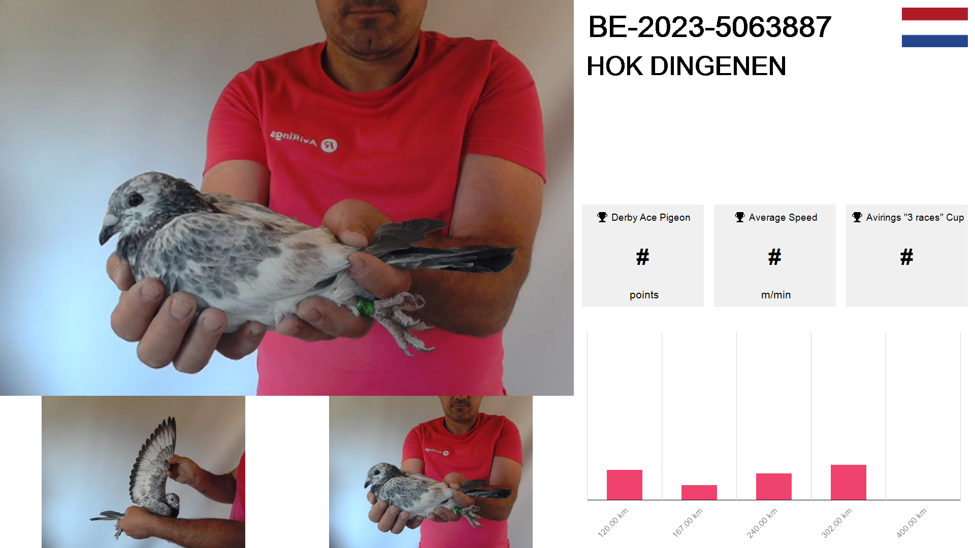| Race | Position | Number of pigeons | Percent | Speed | Distance |