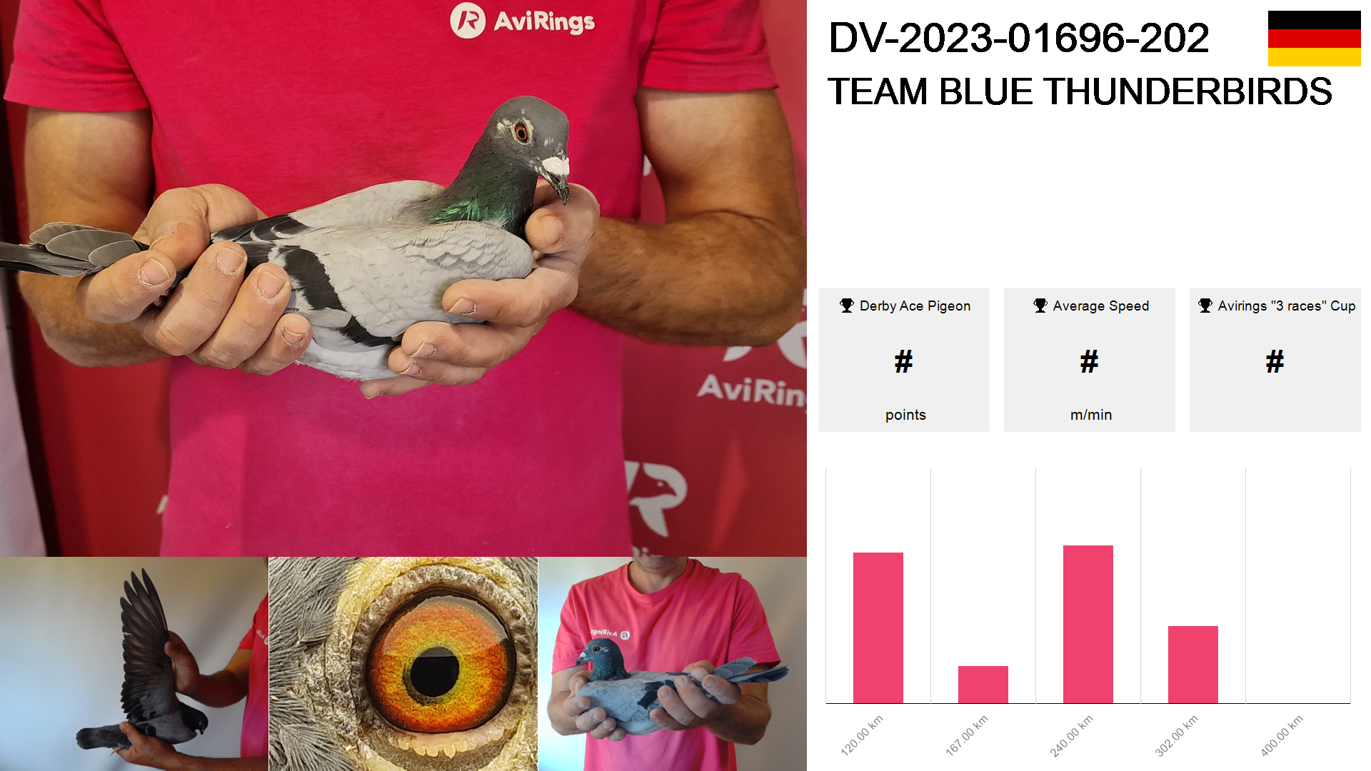 | Race | Position | Number of pigeons | Percent | Speed | Distance |