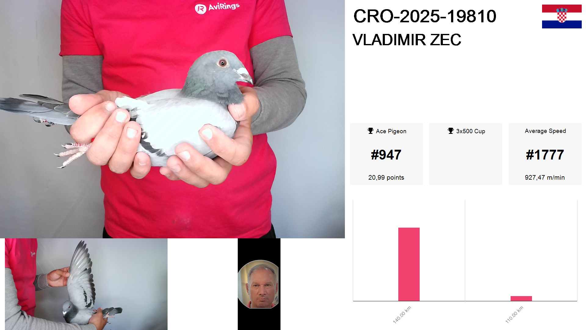 | Race | Position | Number of pigeons | Percent | Speed | Distance |