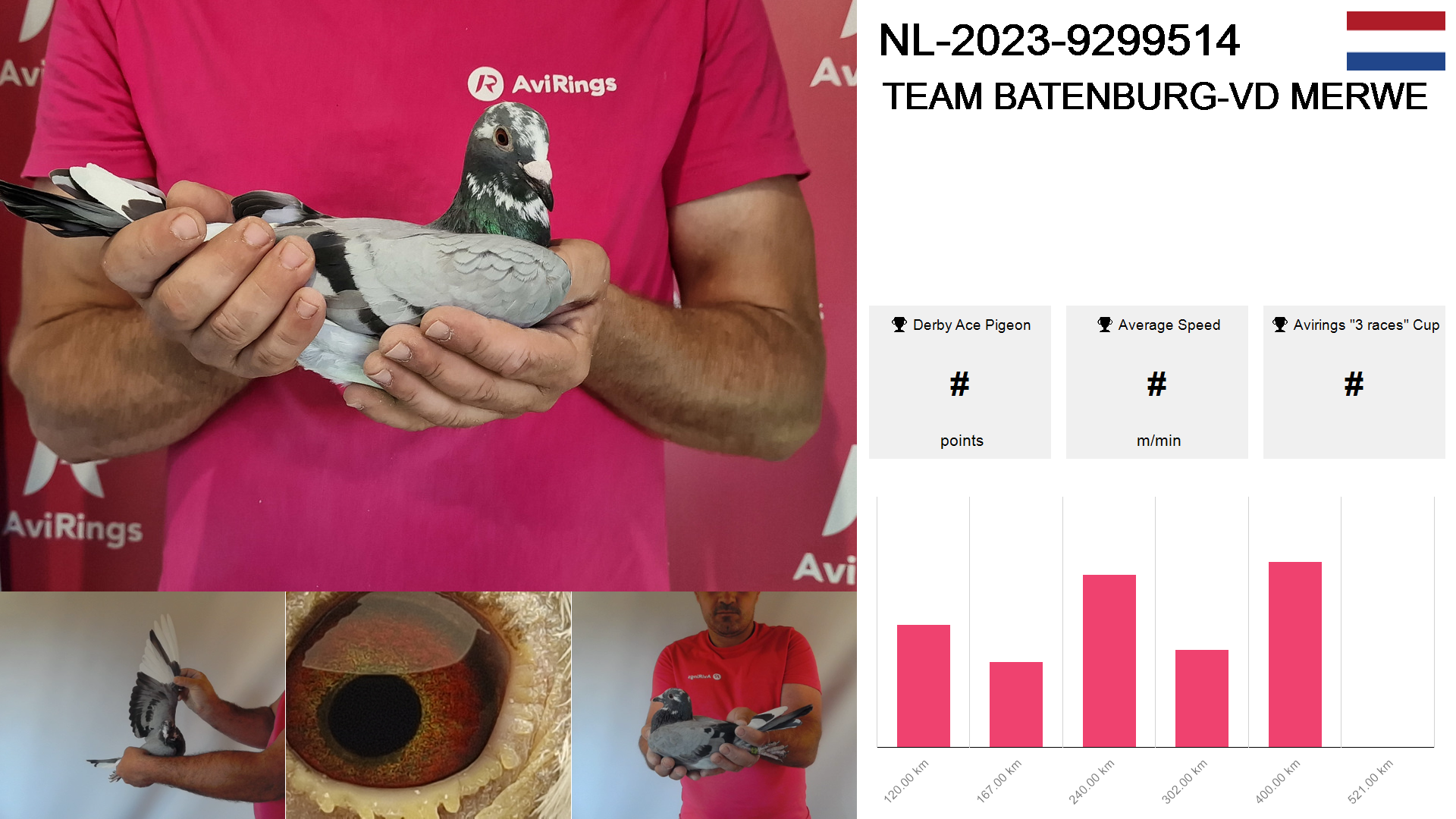 | Race | Position | Number of pigeons | Percent | Speed | Distance |