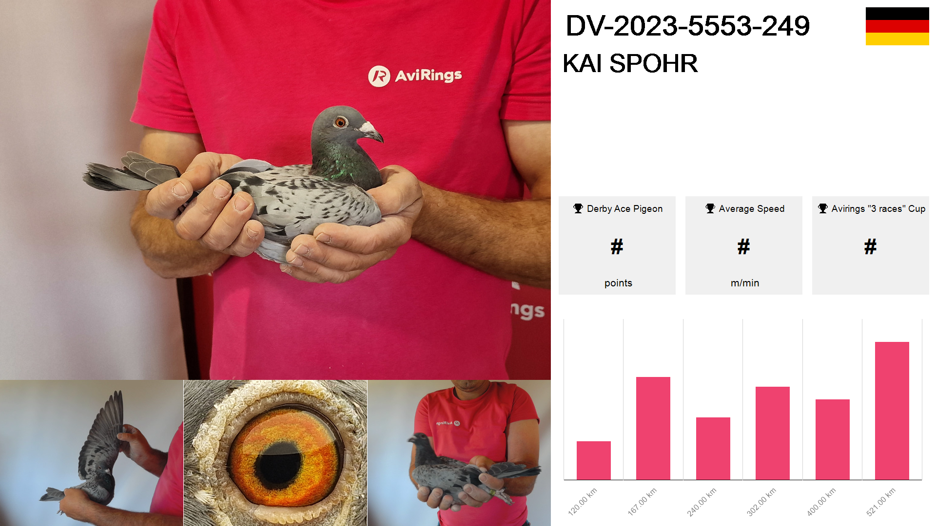 | Race | Position | Number of pigeons | Percent | Speed | Distance |
