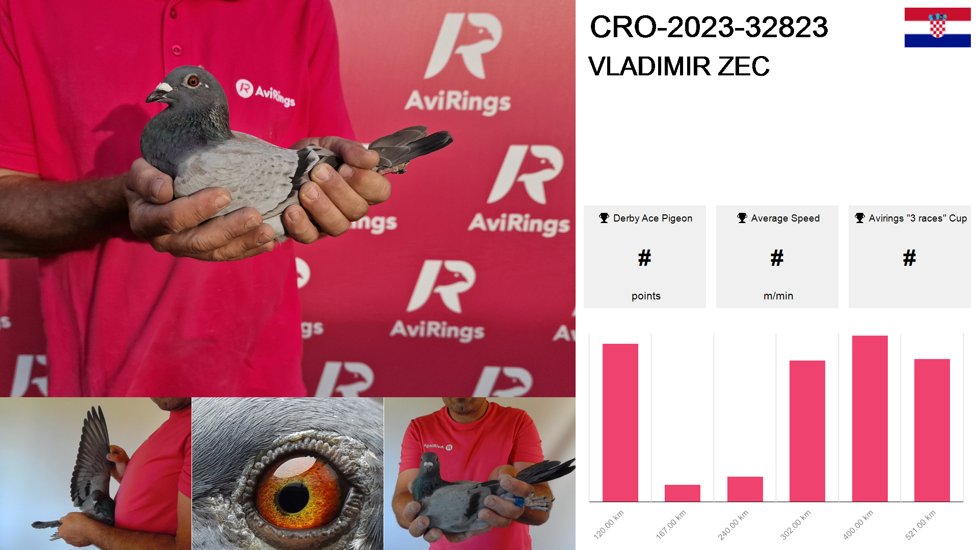 | Race | Position | Number of pigeons | Percent | Speed | Distance |