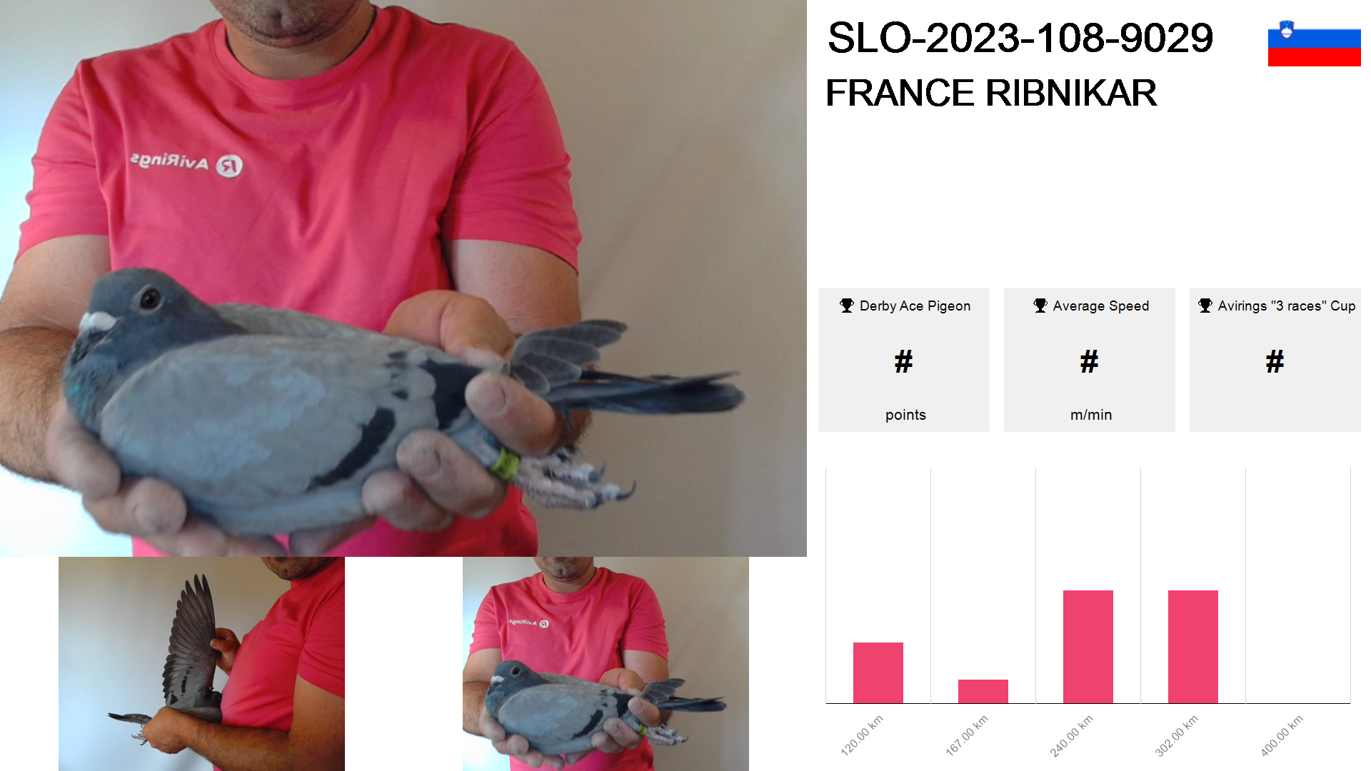 | Race | Position | Number of pigeons | Percent | Speed | Distance |