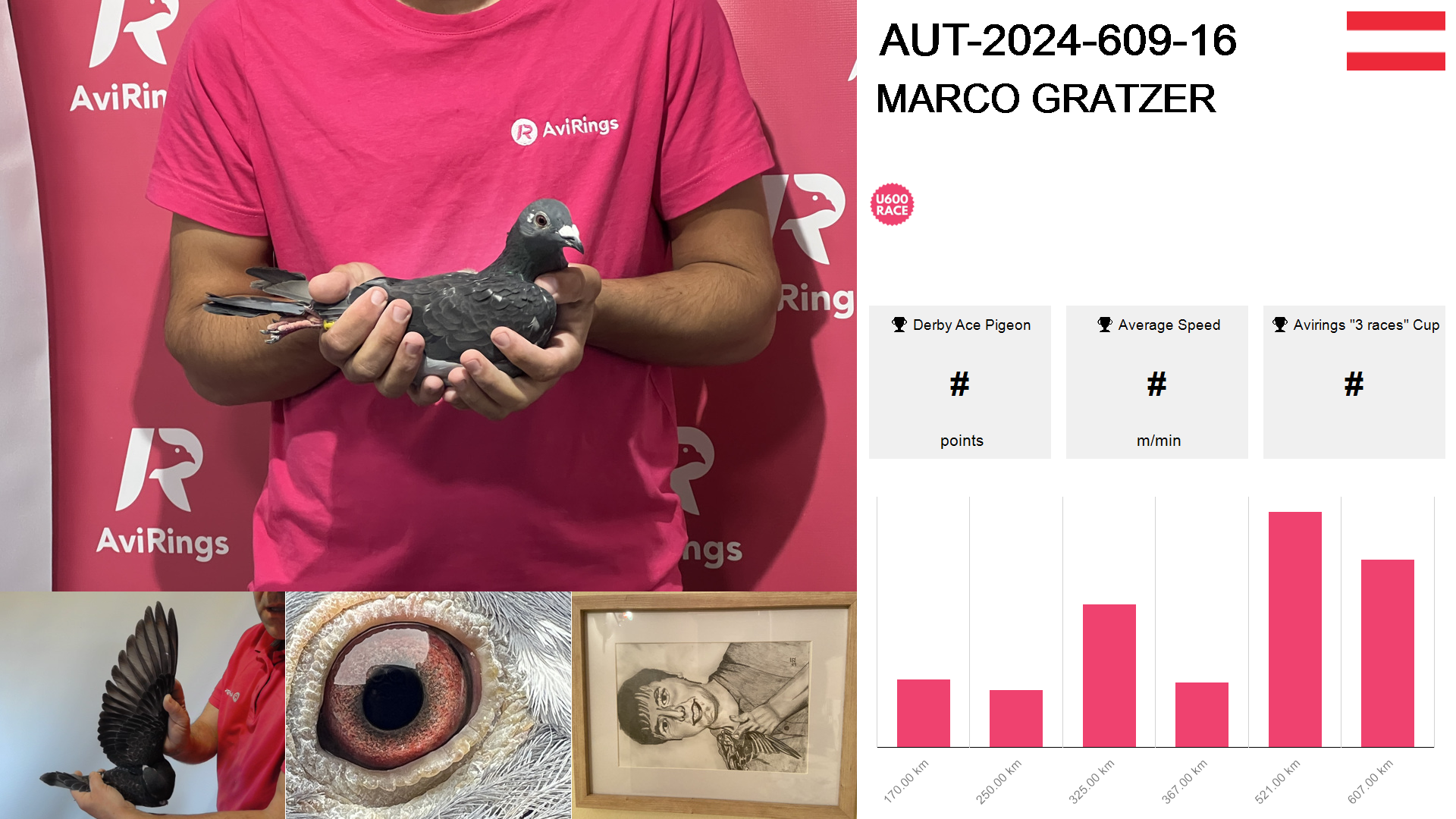 | Race | Position | Number of pigeons | Percent | Speed | Distance |