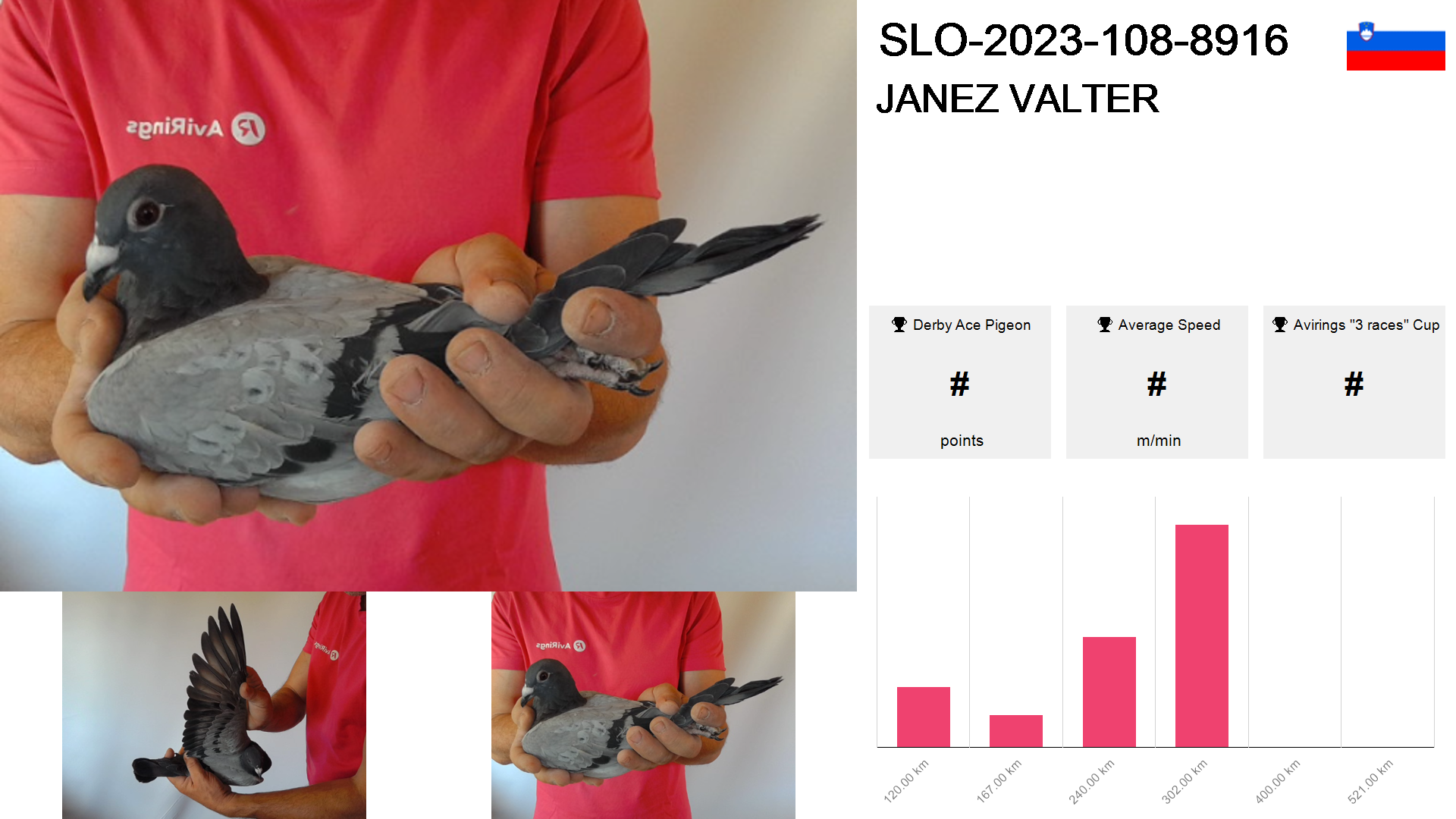 | Race | Position | Number of pigeons | Percent | Speed | Distance |