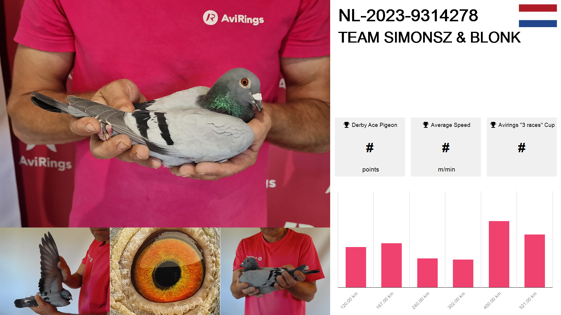 | Race | Position | Number of pigeons | Percent | Speed | Distance |