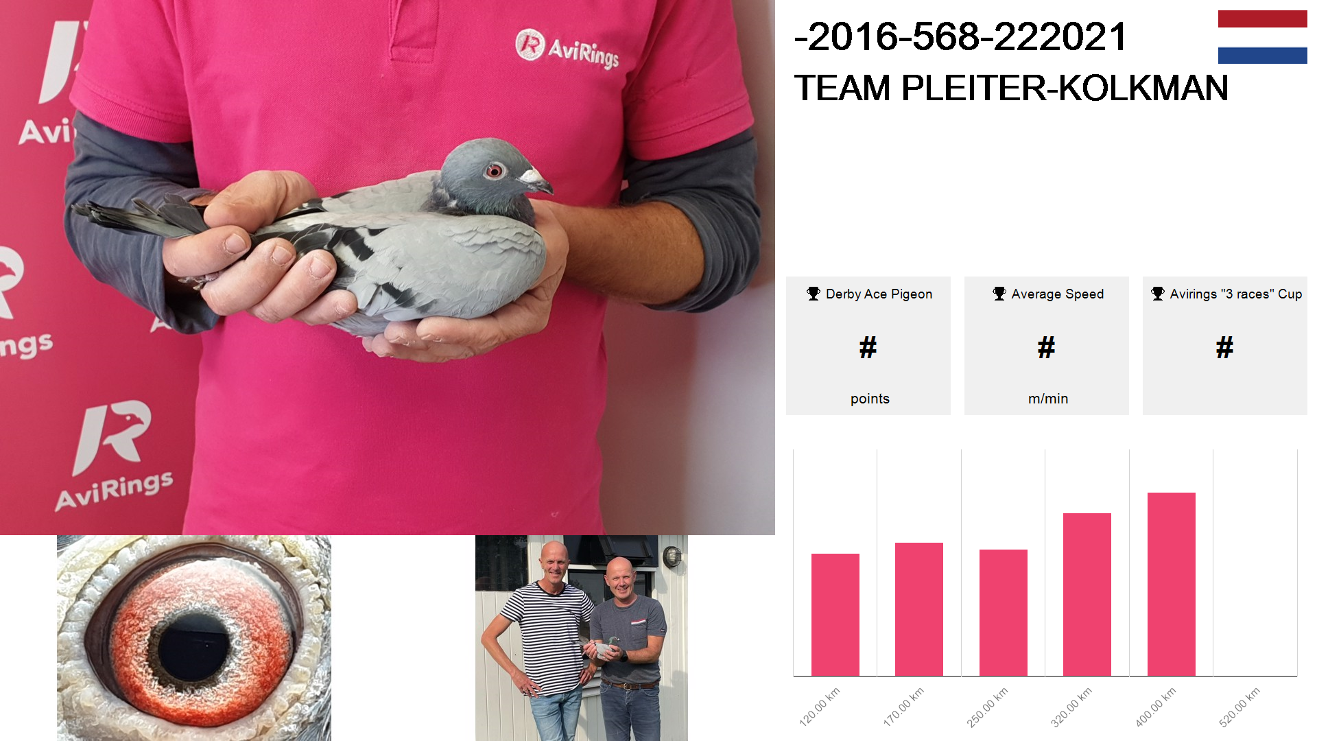 | Race | Position | Number of pigeons | Percent | Speed | Distance |