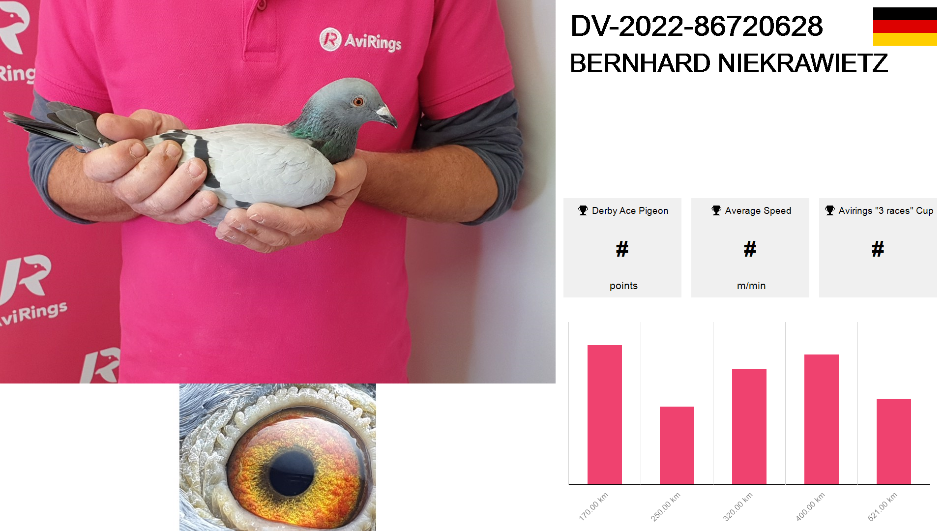 | Race | Position | Number of pigeons | Percent | Speed | Distance |